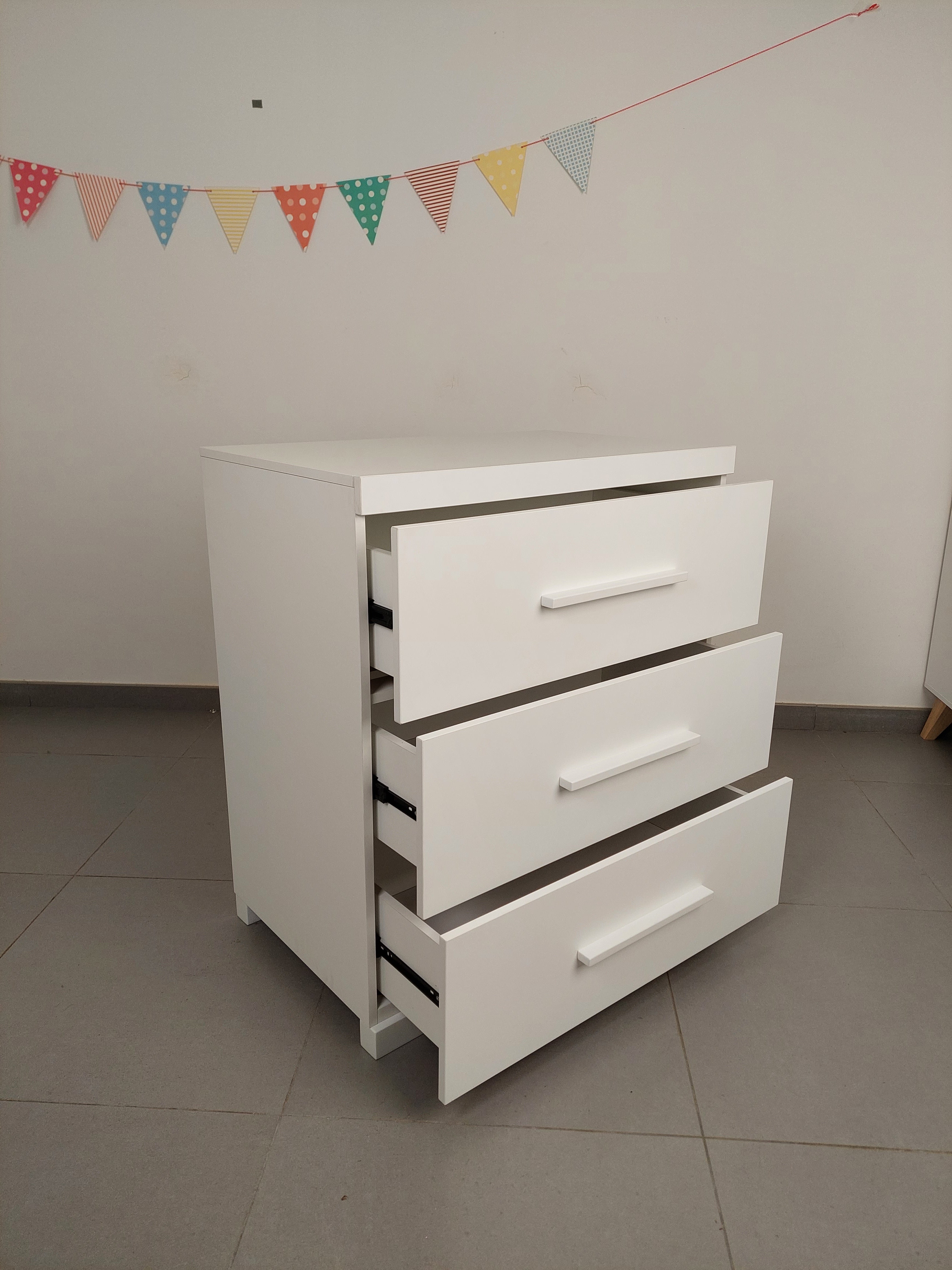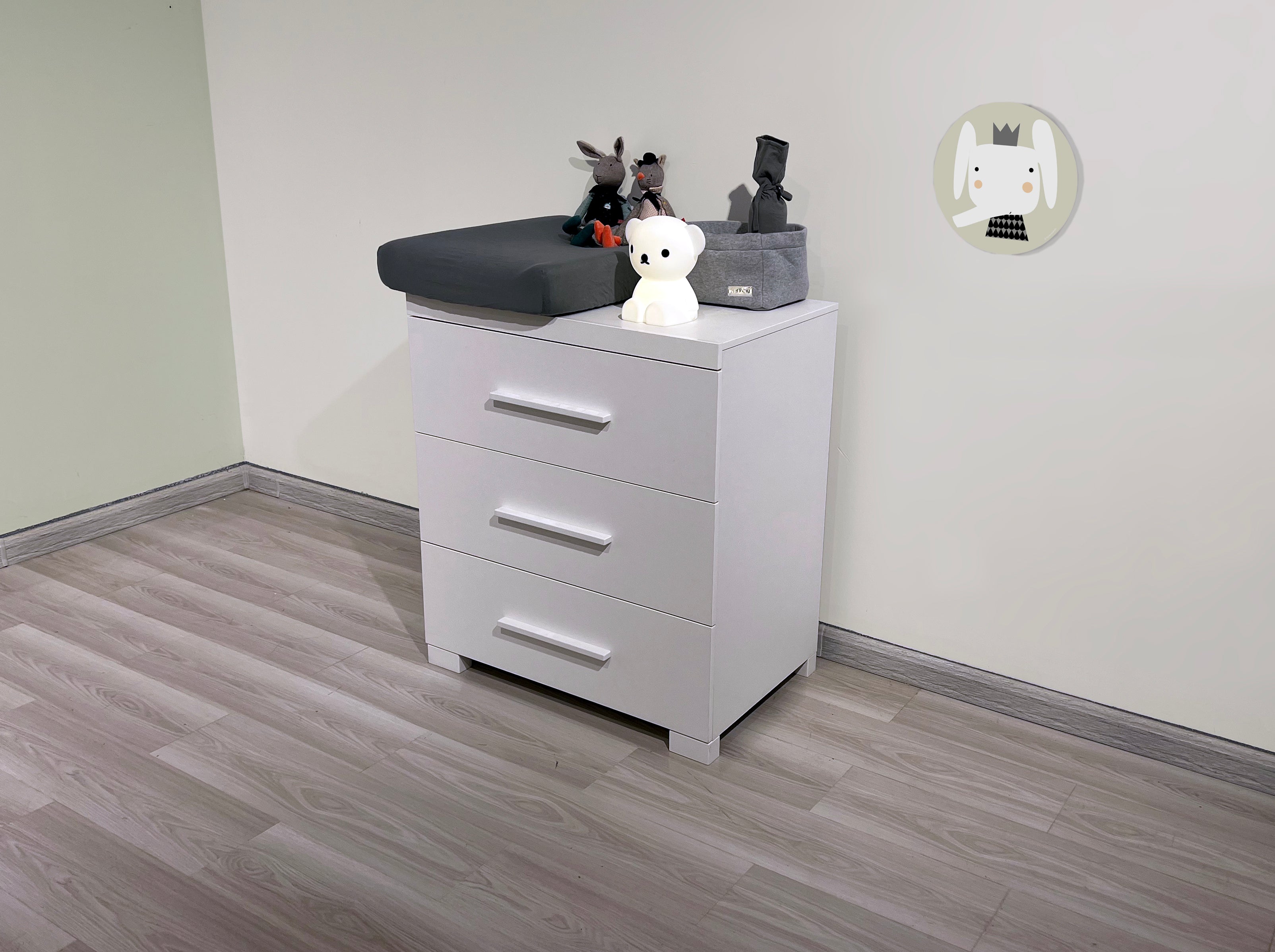 Fabricado inteiramente em MDF durável, este gaveteiro oferece resistência e estabilidade, mantendo um aspeto refinado e minimalista. As suas três gavetas espaçosas proporcionam amplo espaço para os essenciais do bebé, roupas e acessórios, ajudando os pais a manter tudo organizado e ao alcance.
