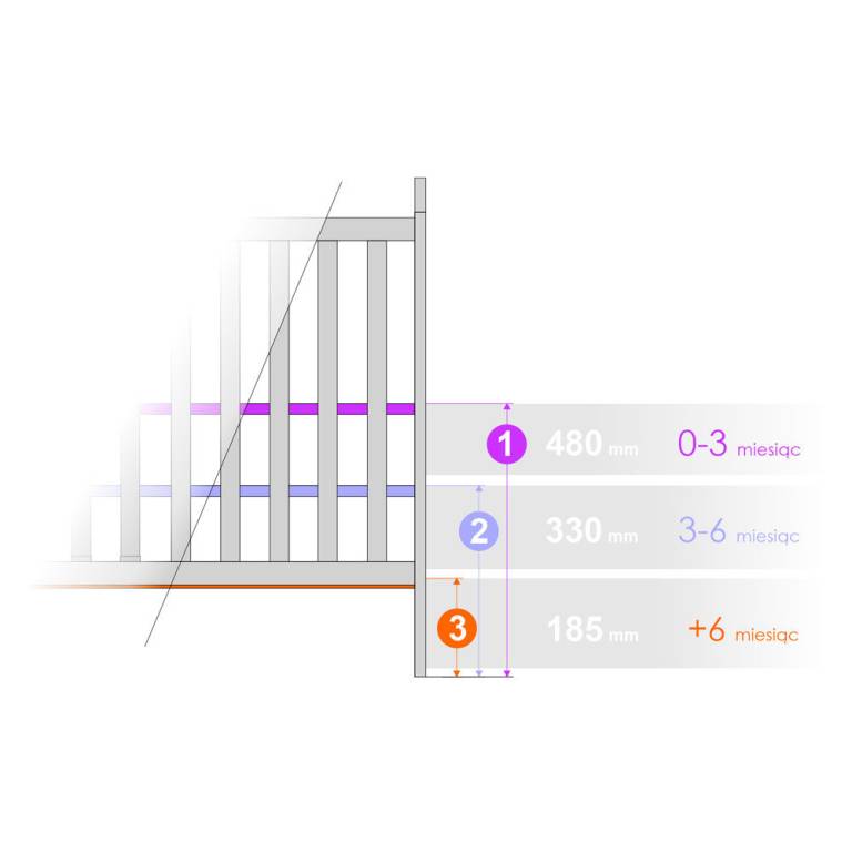 Design conversível: Ripas removíveis e barreira opcional prolongam a utilização até aos anos de criança pequena.