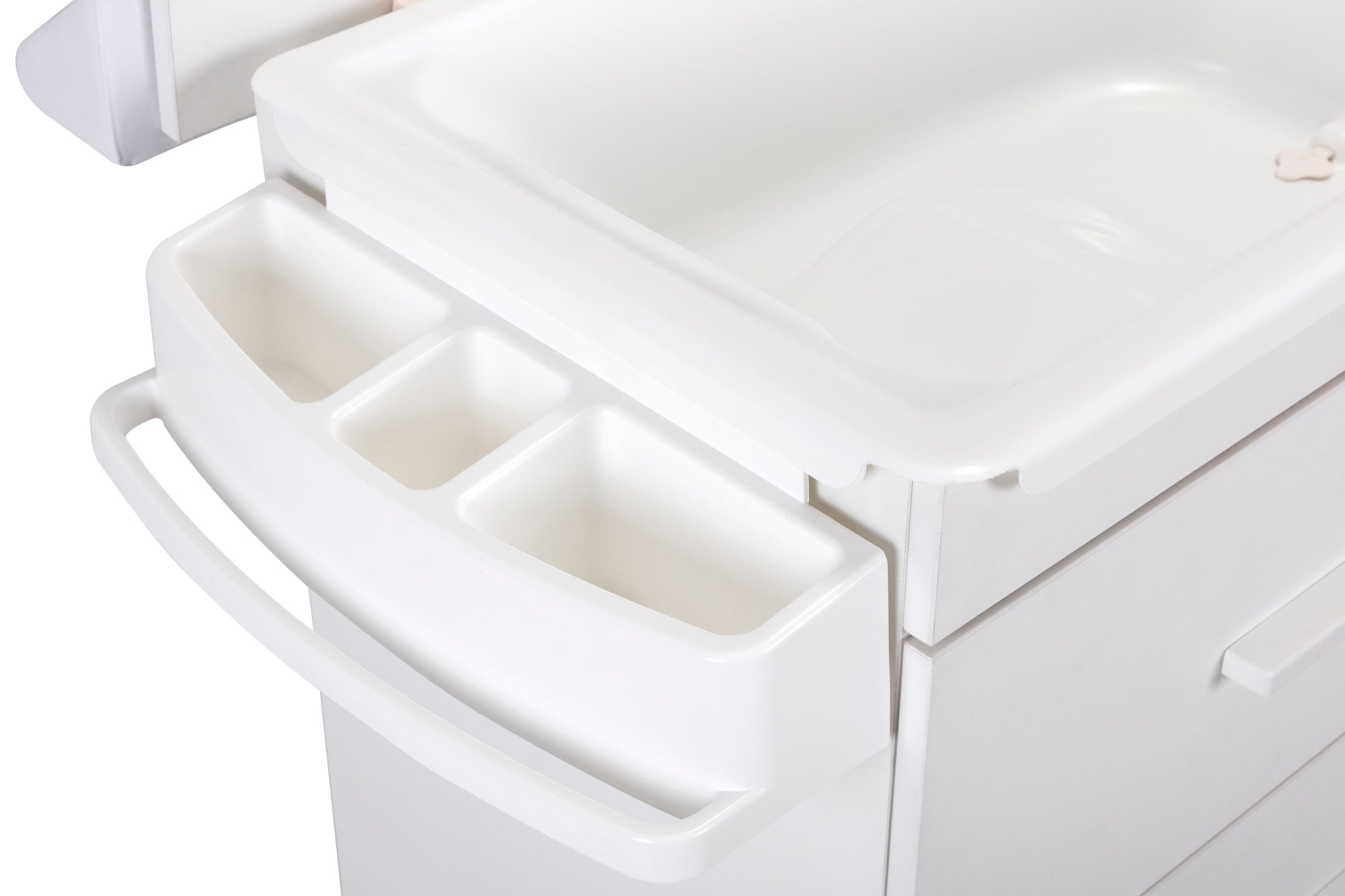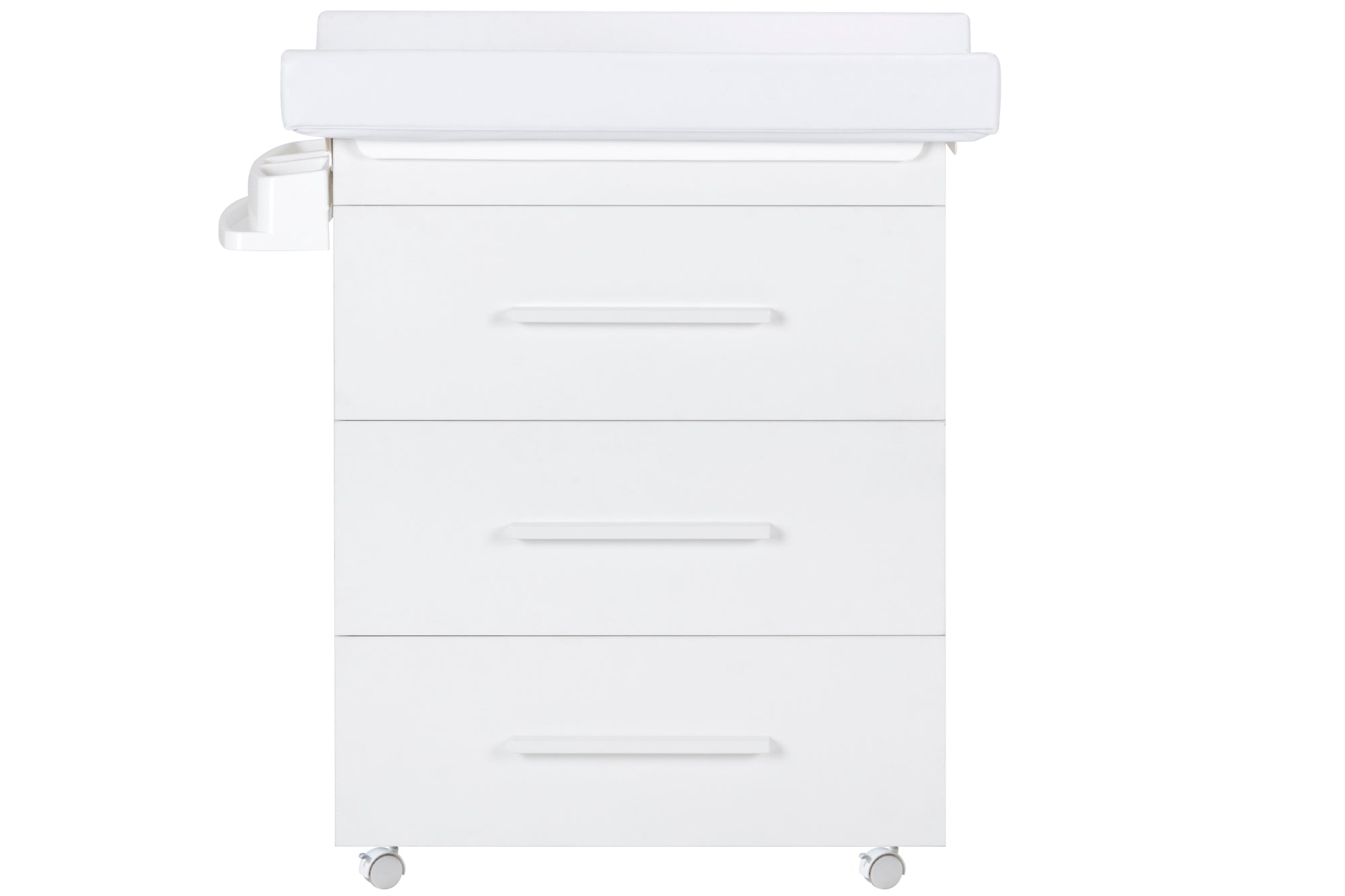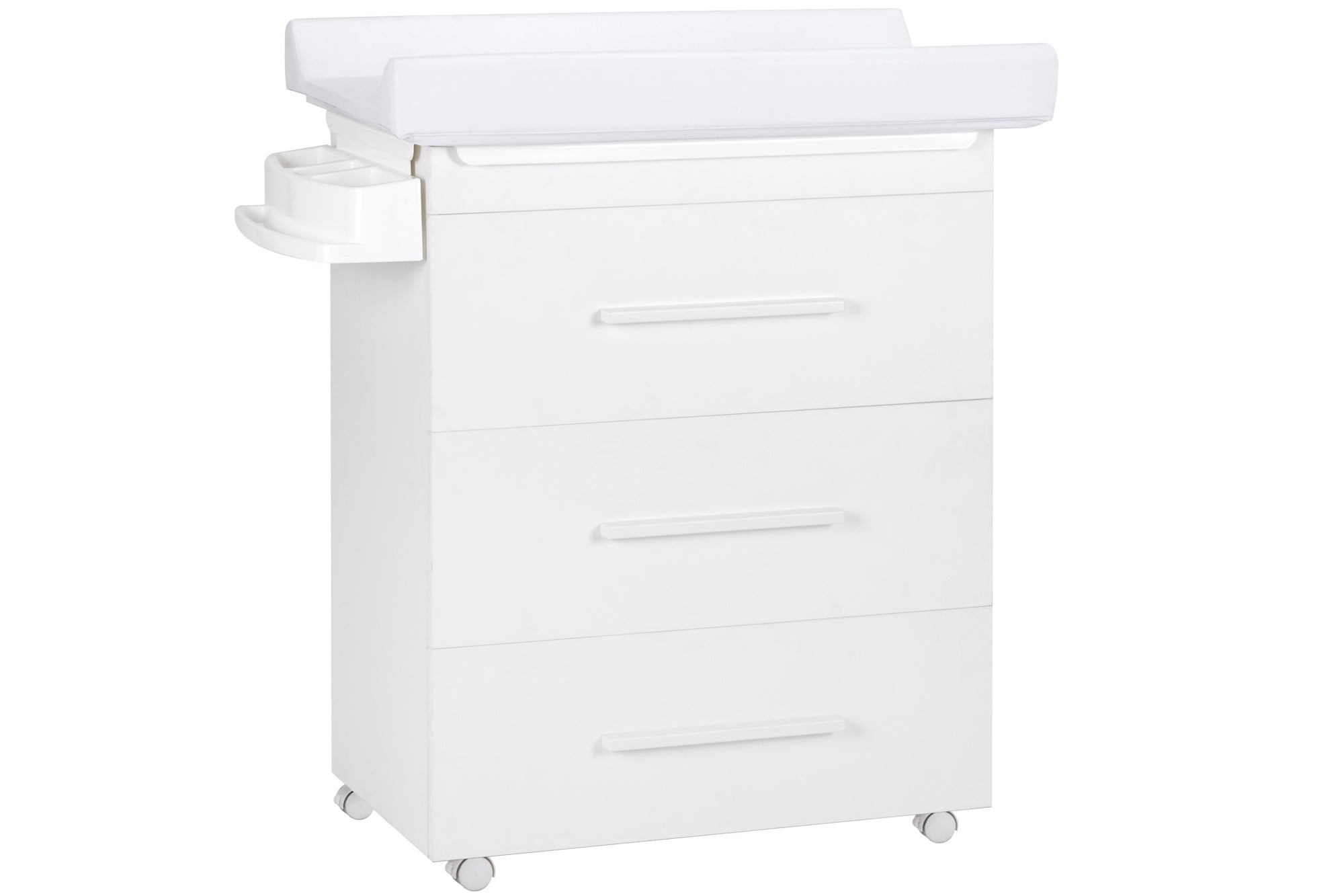 Confecționată integral din MDF durabil, această comodă de baie oferă atât rezistență, cât și stabilitate, menținând în același timp un aspect rafinat și minimalist. Cele trei sertare spațioase oferă suficient loc pentru haine, lenjerii și esențiale pentru bebeluși, în timp ce cada încorporată și salteaua de schimbare din PVC transformă rutinele zilnice în momente line și organizate.