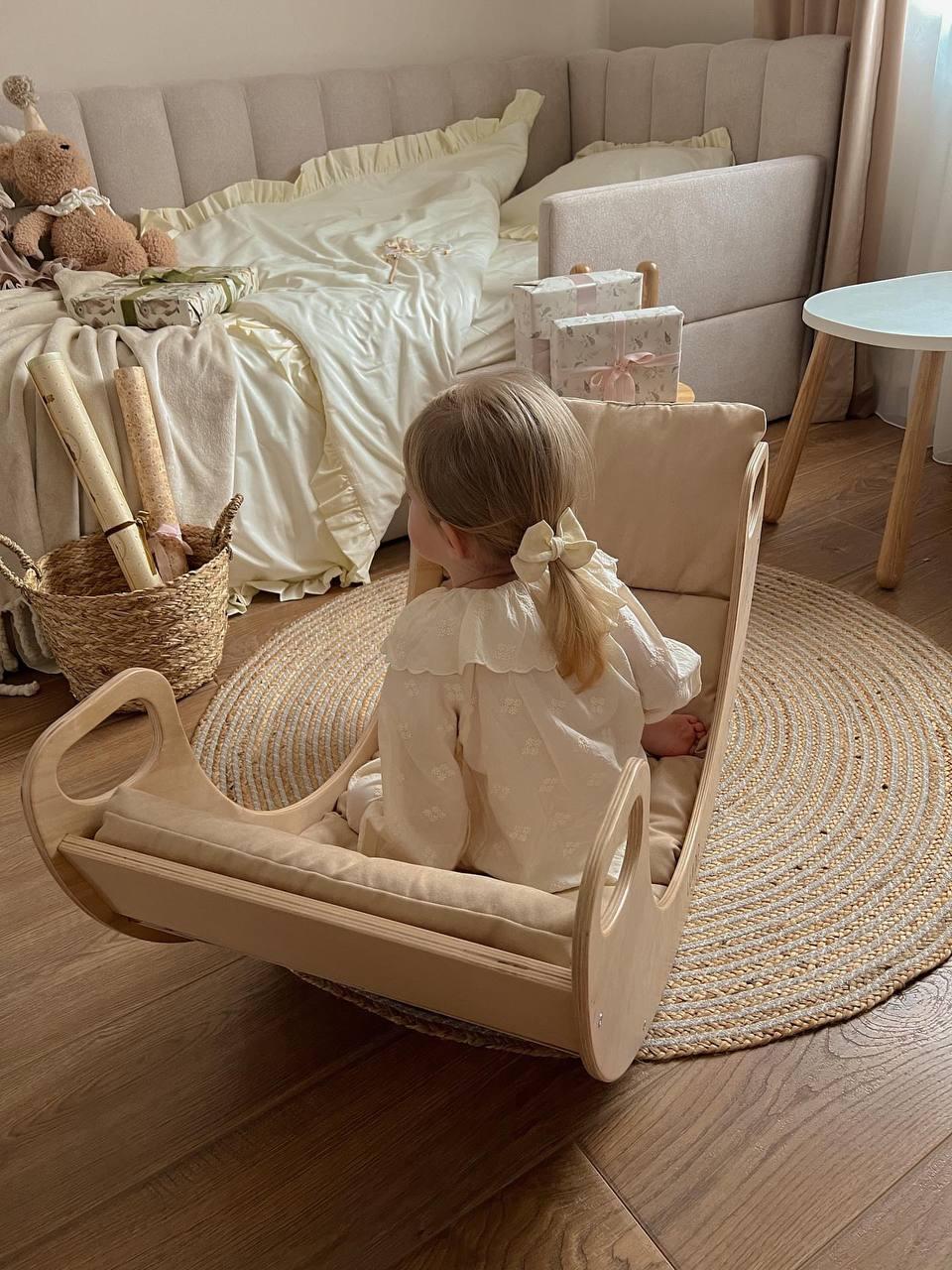 Hojdacie kreslo Klasik je pevný a nadčasový kus nábytku navrhnutý tak, aby priniesol pohodlie a hravý pohyb do každodenného života dieťaťa. Vyrobené kompletne z vysokokvalitnej preglejky, ponúka spoľahlivú pevnosť a zároveň hladký, prírodný povrch, ktorý sa ľahko zladí s moderným interiérom.