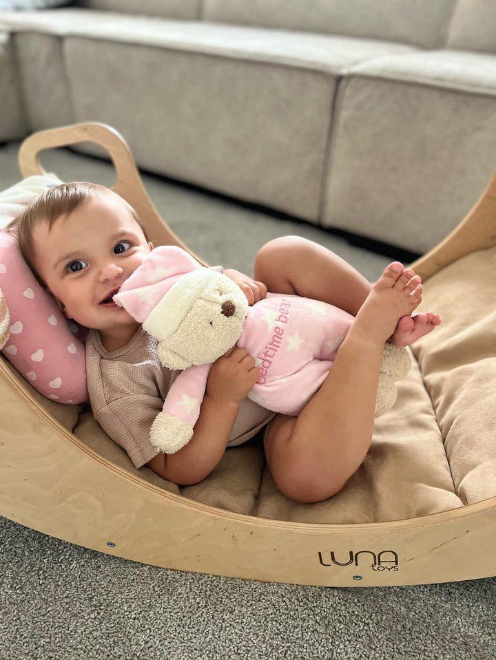 Hra inšpirovaná Montessori: Podporuje samostatnosť, rovnováhu a rozvoj motoriky jemným hojdacím pohybom.