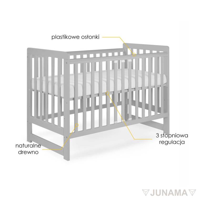 Detská postieľka Junama Gray prináša vyváženú harmóniu štýlu a praktickosti do detskej izby. Jej jemný sivý odtieň dodáva teplo a noblesu, čím sa stáva univerzálnym stredobodom, ktorý krásne ladí s moderným aj klasickým zariadením. Vyrobená s dôrazom na starostlivosť a presnosť, táto postieľka poskytuje bezpečné a prispôsobiteľné prostredie pre najmladšie roky vášho dieťaťa.