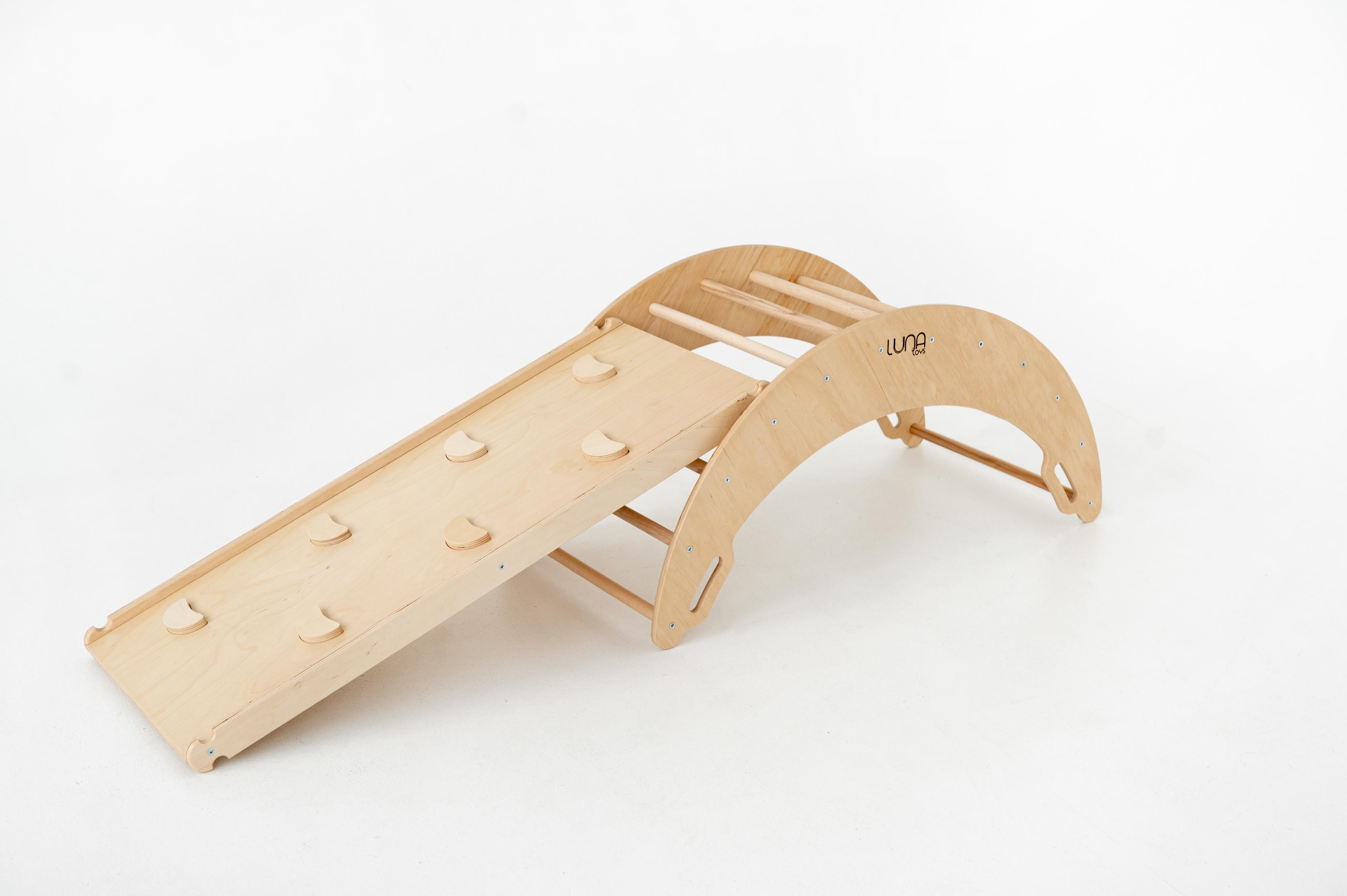 Lunatoys Piklerov trojuholník je starostlivo navrhnutý Montessori lezecký rám, ktorý podporuje bezpečnú a aktívnu hru a zároveň rozvíja motorické zručnosti vášho dieťaťa. Vyrobený z odolnej , ponúka pevnú, no zároveň ľahkú konštrukciu, ktorá sa prirodzene hodí do moderných interiérov.