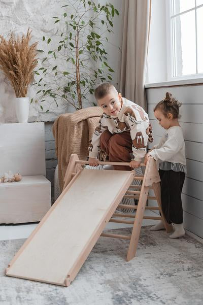 Navrhnutý tak, aby deti mohli objavovať rovnováhu, koordináciu a sebadôveru, Lunatoys Piklerov trojuholník nie je len hračka – je to bezpečná a podnetná cesta k rastu a samostatnosti.