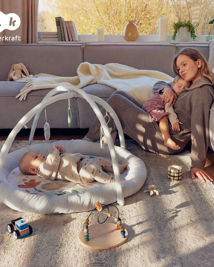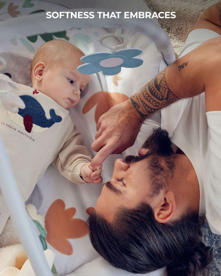 Svep in ditt barn i den mjuka komforten av COZYPLAY-mattan, tillverkad av ultra-mjuk tyg som är skonsam mot deras känsliga hud. Oavsett om de övar på magläge, greppar efter leksaker eller bara njuter av en tupplur, är din baby skyddad i fullständig säkerhet. Dessutom, med sin eleganta, minimalistiska design och mjuka grå nyanser, smälter denna matta sömlöst in i din heminredning.